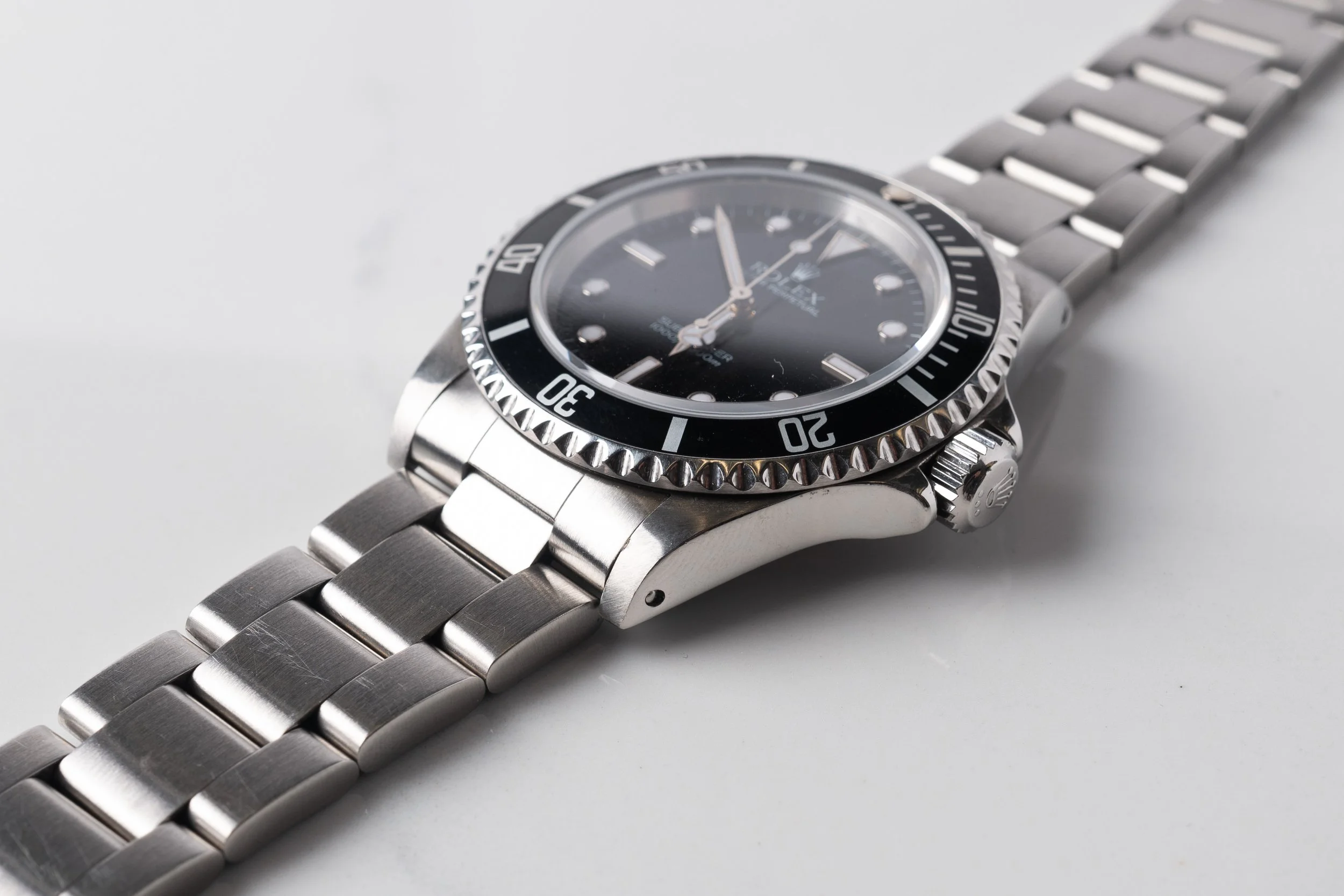 Rolex Submariner 14060M with the upgraded movement from its 14060 predecessor. The watch comes preowned with minor signs of use. Thick case and tight bracelet, with its original hang tag containing the serial, and original warranty papers dated 2003.