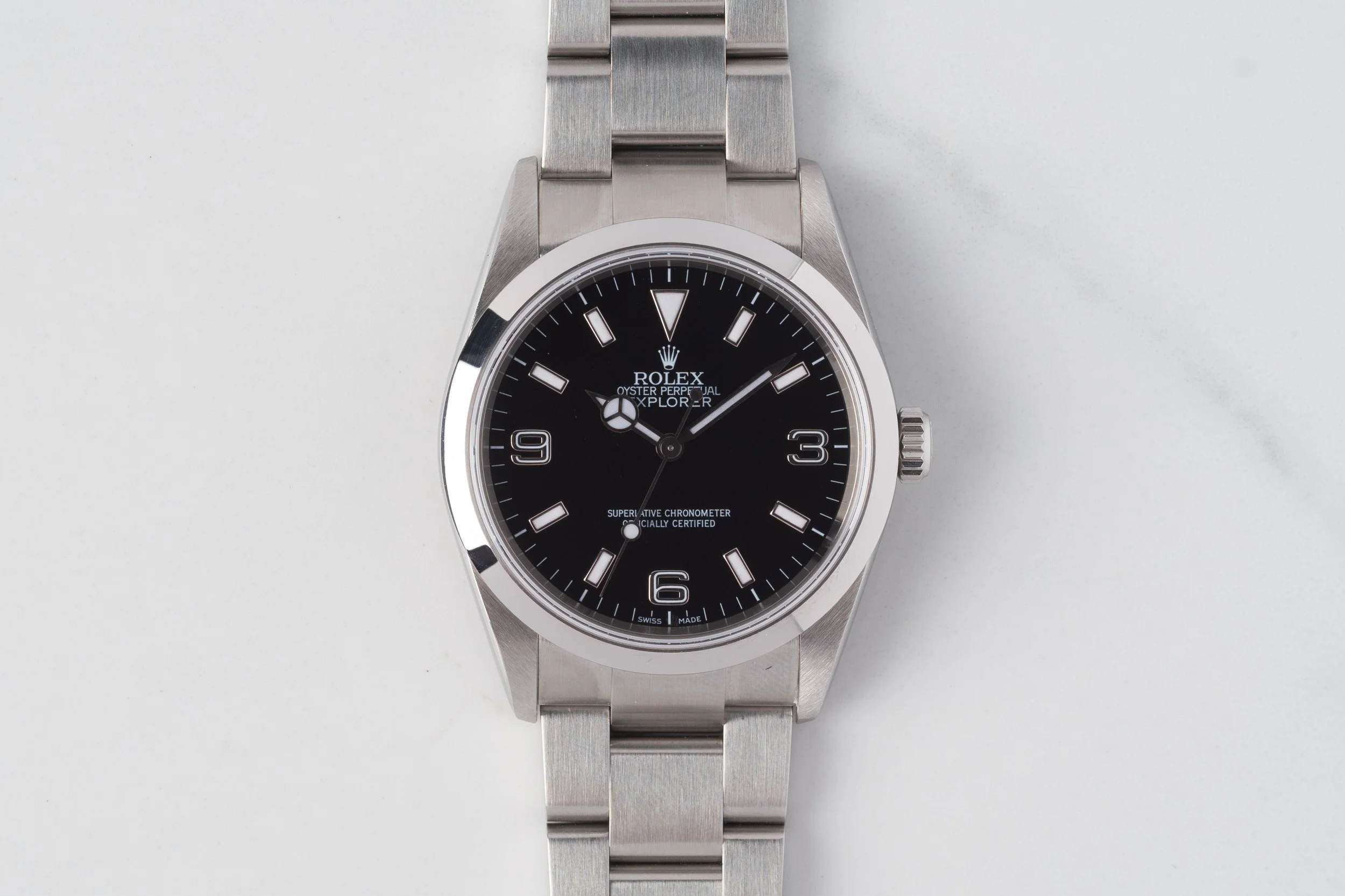 The perfect proportions and a simple sports watch, it’s no wonder Rolex has reverted to its classic 36mm size for its modern iteration. There are a couple light marks on the dial seen at a certain angle however, near the post and right below the ‘E’ in Explorer.