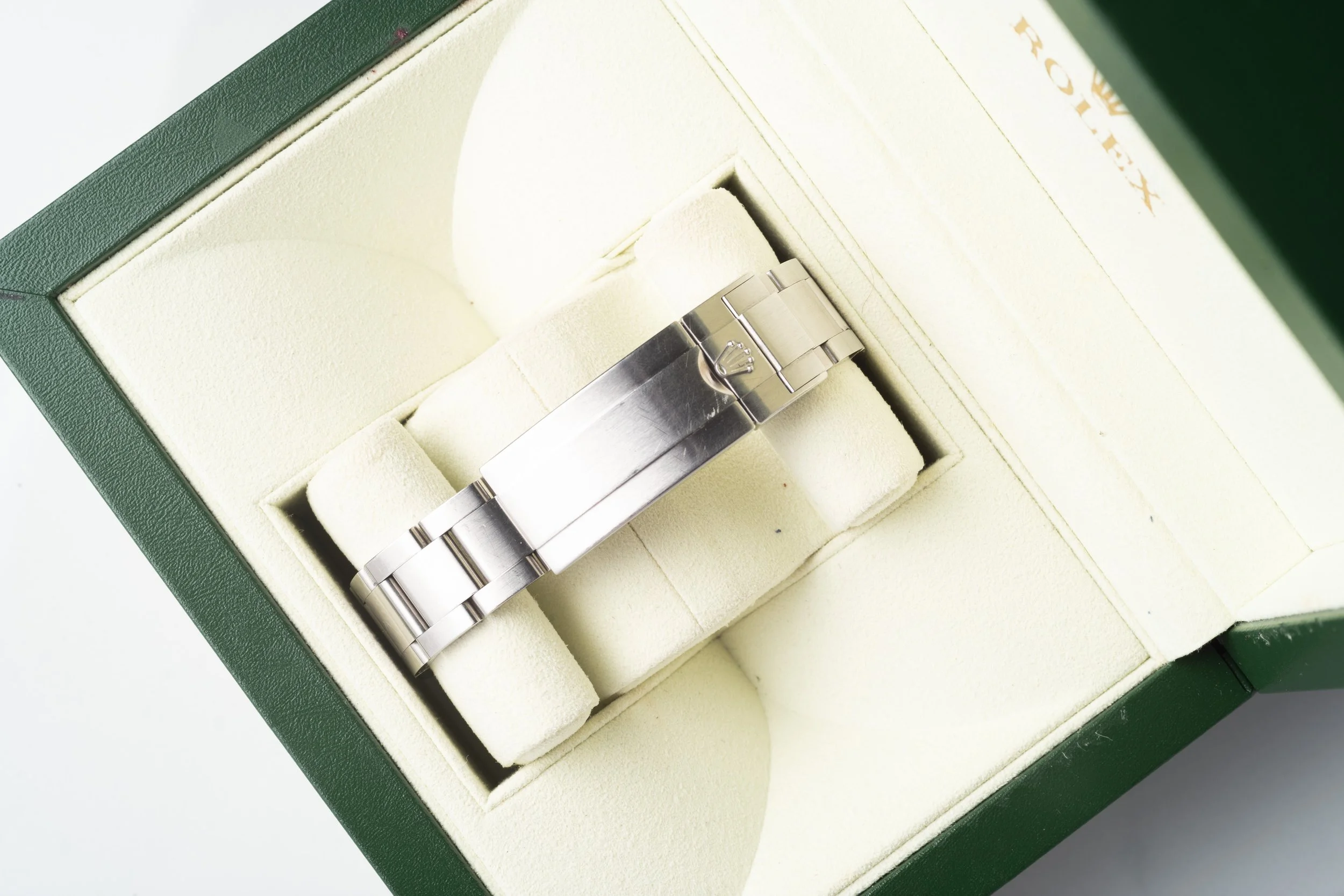 Rolex Submariner reference 116610LN with ceramic bezel and maxi case in complete condition, with booklets and hang tags. These kits hardly come fully complete anymore as they pass from hands to hands, but this one comes complete along with a recent service receipt. The watch has not been polished and harbors signs of use throughout the watch, minor scratches on the bracelet and the case. There is a ding on the top right lug of the watch. The watch was recently serviced by a third party watchmaker with a new mainspring in 7/22.