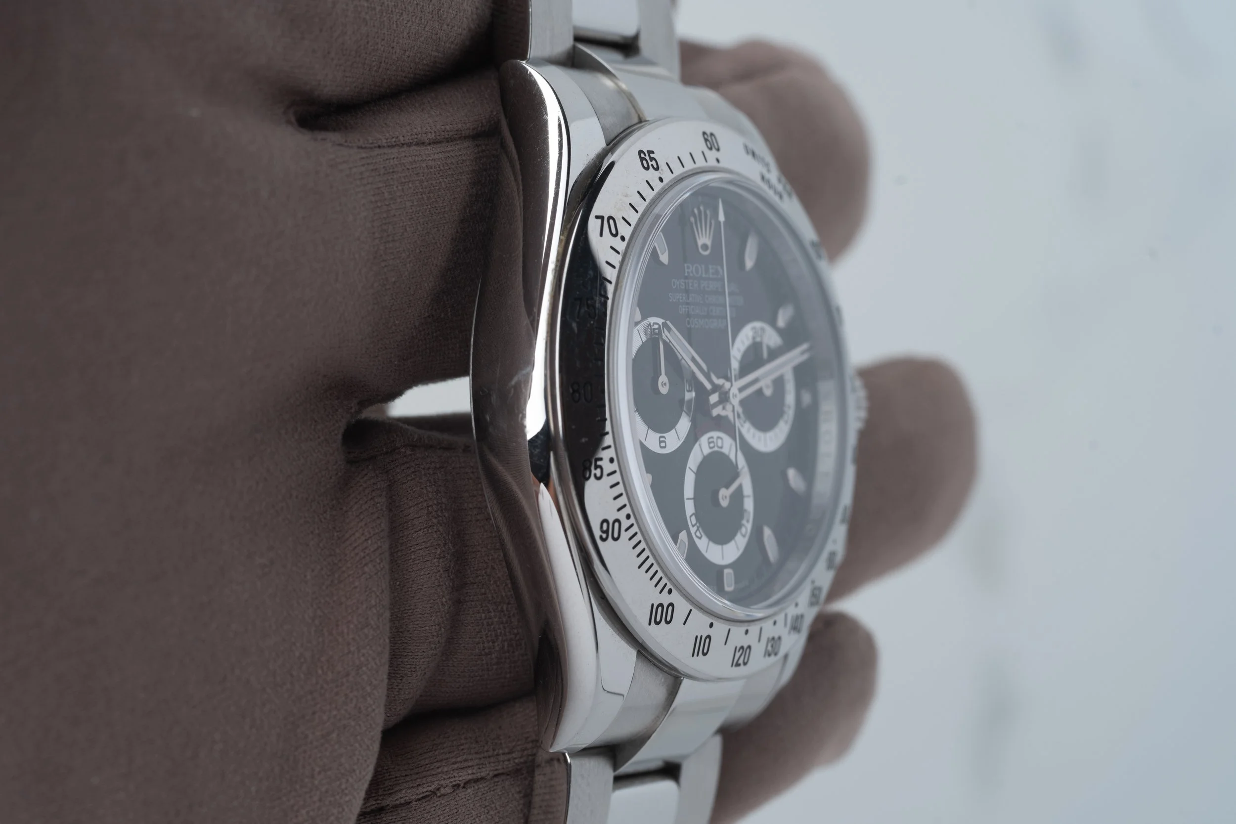 The hottest Rolex sports model, from its vintage models to its current ceramic model. This reference 116520 sits comfortably after its sought-after Zenith Daytona generation, currently the cheapest - as hard that is to believe - stainless steel Daytona along its entire line. It houses an in-house movement, but retains the look of its predecessor with the stainless bezel.