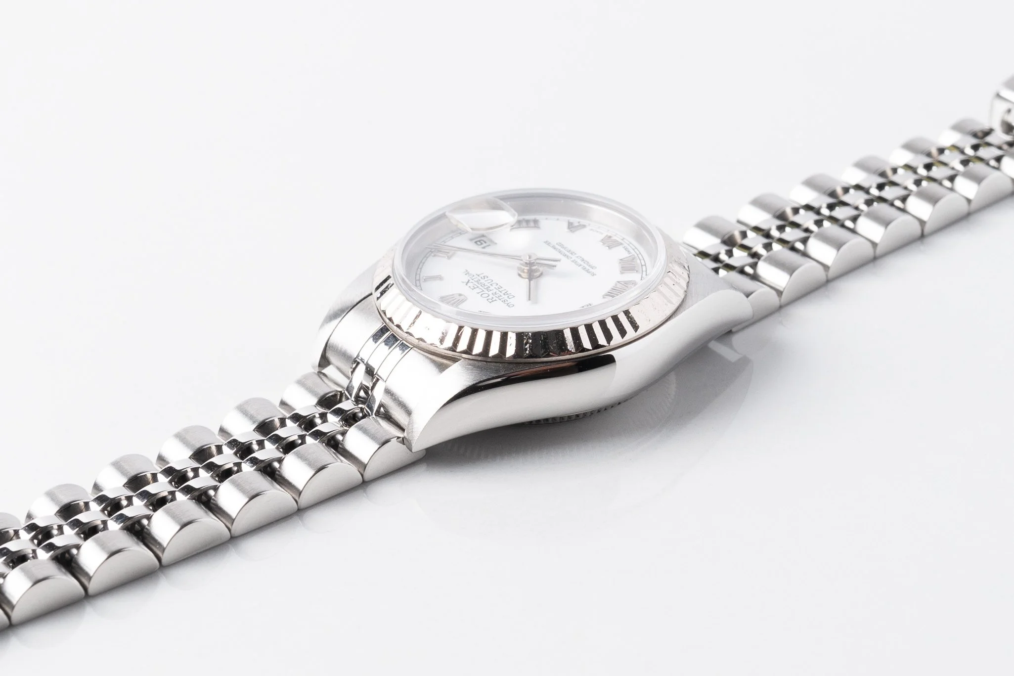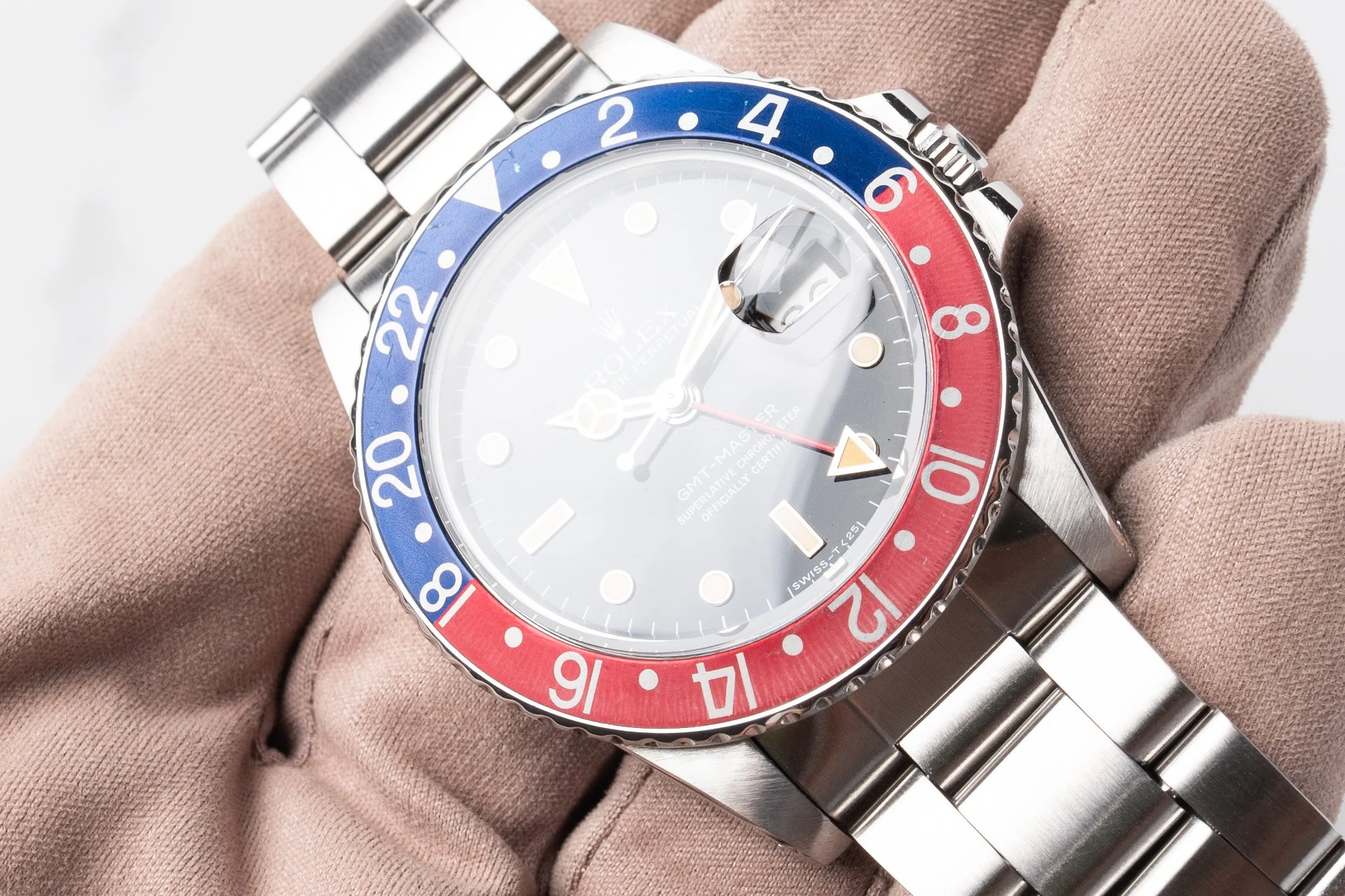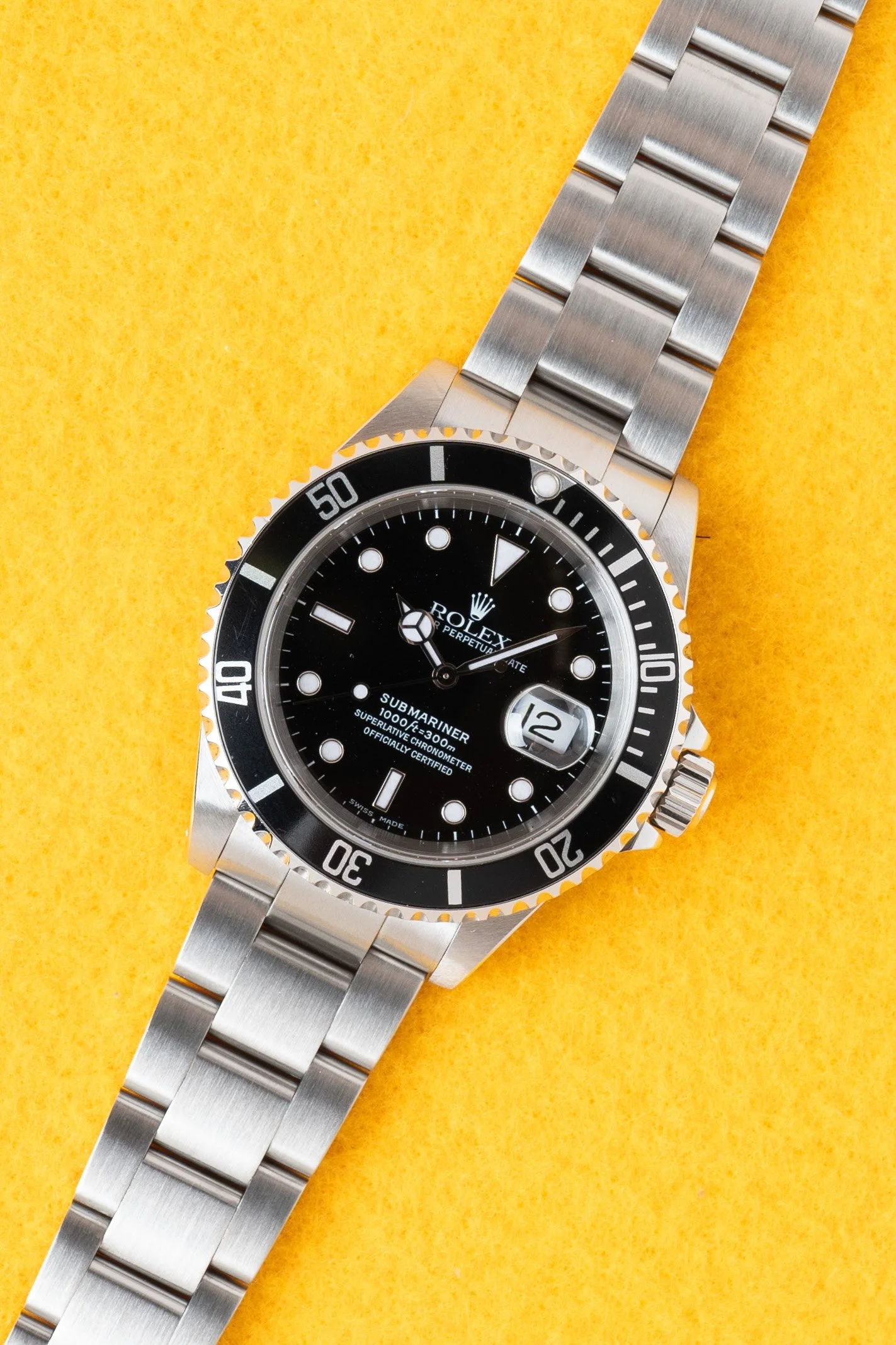 Watches 2012 Rolex Yacht-Master 16622 with Box and Papers $10,550.00 2003 Rolex Datejust 79174 White Roman Dial $4,750.00 2000 Rolex Submariner 16610 with Box and Papers $9,950.00 2006 Rolex GMT-Master II 16710BLRO with RSC Card $11,950.00 2001 Rolex Oyster Perpetual Date 15200 Arabic Blue Dial - Box, Papers, RSC Card $5,650.00 2006 Rolex Submariner 14060M Frog Foot Dial $8,750.00 1988 Rolex Datejust 16233 White Roman Dial $6,950.00 1999 Rolex Datejust 16220 Blue Roman Dial $6,250.00 1981 Rolex GMT-Master 16753 Black Nipple Dial $10,950.00 2000s Audemars Piguet Royal Oak 14790ST White Dial with AP Service Card $25,950.00 1984 Rolex GMT-Master 16750 No Date Dial $11,950.00 2009 Rolex Explorer II 16570 Polar 3186 Movement with Box and Papers $9,950.00 2000 Rolex Oyster Perpetual Date 15200 Arabic White Dial - Box and Papers $4,950.00 1971 Rolex Oysterdate 6694 Gray Dial $3,550.00 2005 Rolex Datejust 16200 Black Stick Dial with Serial Tag $5,350.00 2000 Rolex Explorer II 16570 Polar Dial with Papers $7,950.00 2000 Rolex Datejust 16234 with Sodalite Diamond Dial $11,750.00 1967 Rolex Explorer 1016 with Box, Papers and Service Papers $24,950.00